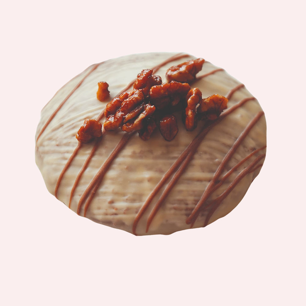 Zucker, Eier, Walnuss (13, 9%), Marzipan (Mandeln, Zucker, Invertzucker Sirup) Kuvertüre (Zucker, Kakaobutter, Vollmilchpulver, Sonnenblumenlecithin, Vanille) Weizenmehl, Sukkadepaste (Cedernfruchtschalen, Glukose-Fruktose-Sirup, Zucker, Citronensäure), Walnuss, Mandeln, Honig Kuvertüre (Kakaobohne, Zucker, Sojalecithin, Vanille) Walnusszubereitung (Zucker, Erdnussöl, Haselnüsse, Sojaproteine, Walnüsse, Cashew-Nüsse, Magermilchpulver, Mono- und Diglyceride von Speisefettsäuren, Milchsäureester von Mono- und Diglyceriden von Speisefettsäuren, Propylenglycolester von Speisefettsäuren, Lecithin, Aromen, Antioxidationsmittel: Alpha-Tocopherol) Obladen (Weizenmehl, Stärke), Gewürzmischung, Backtriebmittel (Ammoniumbicarbonat), Invertase